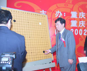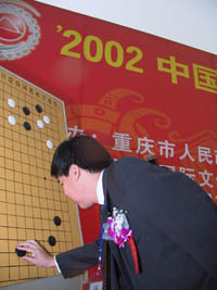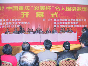 二零零二中國(guó)重慶“炎黃杯”名人圍棋邀請(qǐng)賽今天上午在此間正式開枰。在未來(lái)幾天時(shí)間里,來(lái)自世界各地的炎黃子孫們將在山城重慶及壯美的長(zhǎng)江上紋枰論道,以棋會(huì)友。