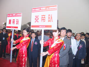 今天“炎黃杯”開幕式在長(zhǎng)江和嘉陵江交匯的朝天門廣場(chǎng)舉行。在重慶市人大常委會(huì)副主任肖祖修與臺(tái)灣何信仁先生為本屆賽事開棋之后,由數(shù)十位海內(nèi)外愛好和精研圍棋的華人名流組成的“炎帝隊(duì)”和“黃帝隊(duì)”進(jìn)行聯(lián)棋賽,選手們各顯神通后,棋局被封盤保存。