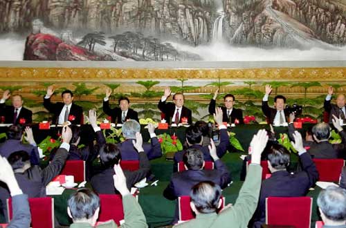 會議以舉手表決的方式,通過了經(jīng)各代表團差額預(yù)選產(chǎn)生的中央委員會委員、中央委員會候補委員、中央紀律檢查委員會委員候選人名單,提請各代表團再次醞釀。