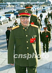 解放軍代表隗福臨步入會場時受到媒體關(guān)注。