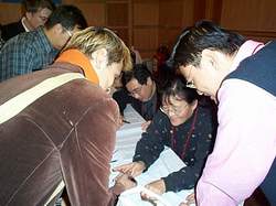 據(jù)新聞中心的一位工作人員介紹,由于新常委與記者們見(jiàn)面的場(chǎng)地面積有限,而此次參加十六大報(bào)道工作的中外記者人數(shù)又太多,所以只能通過(guò)發(fā)放請(qǐng)柬的方式控制參加見(jiàn)面會(huì)的記者人數(shù)。大會(huì)新聞中心會(huì)根據(jù)每家新聞機(jī)構(gòu)規(guī)模的大小,相應(yīng)地發(fā)放一至數(shù)張請(qǐng)柬。(劉志剛)
