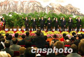 組圖:中共中央政治局九常委與記者見面