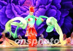 中國一流藝術家十六日和十七日晚在巴黎香榭麗舍大劇院推出“今夜星光燦爛”文藝晚會,為上海申辦世界博覽會造勢助威。此次晚會由上海市政府和中國駐法國大使館主辦。圖為上海歌舞團表演大型民族舞蹈《華夏舞韻》。作者:蔚中