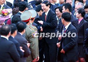 香港特區(qū)行政長官董建華等人前往機場迎接。