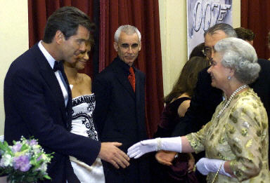18日晚“007”新片《明日再會(huì)》首映式在倫敦皇家阿爾伯特禮堂隆重舉行。皮爾斯·布魯斯南、邦德女郎貝莉·哈瑞以及前幾任邦德的扮演者都參加了此次首映式。圖為英國女王伊麗莎白二世也親臨首映式。