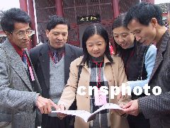 江永女書是世界上獨一無二的女性文字。河南學者王澄溪經(jīng)過多年研究,終于使這個瀕臨失傳的性別文字登上了書法藝術的大雅之堂。由她編著的《澄溪女書書法字帖》成為世界上第一部女書書法字帖。圖為參加國際女書研討會專家們正在研究這本新出版的字帖。白祖偕攝