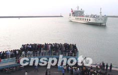 進(jìn)入港池的巨輪向左緩緩轉(zhuǎn)向,忽然人群中發(fā)出一陣歡呼,碼頭上的鞭炮開始熱烈爆響——因?yàn),在船的?cè)身,巨大的中鐵標(biāo)志終于展現(xiàn)在海南人民眼前。從此,坐著火車上北京不再是難以實(shí)現(xiàn)的夢(mèng)想。