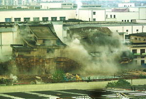 據(jù)悉,此次爆破拆除的武漢卷煙廠鍋爐房,高21.2米,建筑面積4500平方米,共埋設(shè)炸藥320公斤。武漢爆破公司利用鍋爐房?jī)?nèi)3個(gè)總?cè)莘e達(dá)70立方米的煤斗,封閉成“水池”,各層樓面也“筑”成蓄水池。池水中設(shè)藥包,利用水的不可壓縮性,在爆破瞬間形成“高速霧化的水幕”,捕捉粉塵。隨著一聲巨響,鍋爐房頹然倒下,爆破后騰起的不是遮天灰幕,而是一團(tuán)“白霧”,約5分鐘就散盡了。