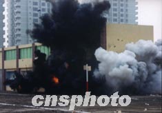 26日,成都首次反恐怖演習(xí)。在某跨國(guó)公司辦公大樓對(duì)面一座商場(chǎng)內(nèi),一直注視事態(tài)發(fā)展的最后一名恐怖分子,眼見計(jì)劃失敗,絕望地以人體炸彈的方式進(jìn)行瘋狂報(bào)復(fù)。作者:劉真
