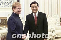 中新社北京十一月二十七日電(記者張朔)中國國家副主席胡錦濤今天下午在人民大會堂會見芬蘭總統(tǒng)塔里婭·哈洛寧時說,在新世紀(jì),中方愿與芬方一道,以更加積極務(wù)實的態(tài)度推動雙邊友好合作關(guān)系全面健康穩(wěn)定地向前發(fā)展。