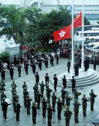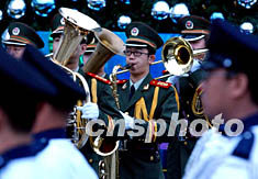 中新網(wǎng)12月1日電 聞名世界的北京天安門廣場升旗隊伍──中國武警軍樂團﹐今日首次與香港警隊樂團在香港的金紫荊廣場聯(lián)合舉行升旗儀式。