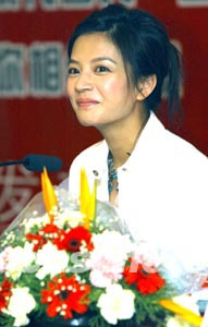 趙薇11月30日在鄭州為休閑服飾諾漫琦做代言人,在記者見面會上,纖瘦了很多的趙薇光彩照人。趙薇這是第一次為服裝品牌做代言人,她表示很喜歡這個品牌的休閑服飾。馬健 攝