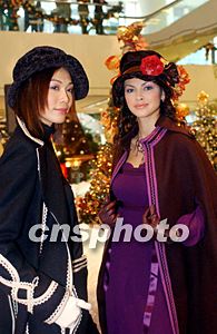 香港名模Rosemary〔右〕,12月2日在太古廣場(chǎng)的圣誕華麗布景前,展示名牌時(shí)裝。洪少葵 攝