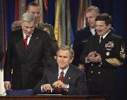 他再次警告,伊拉克拒絕履行聯(lián)合國安理會決議的后果將是戰(zhàn)爭,美國將會在危險(xiǎn)增大之前采取先發(fā)制人的行動(dòng)。