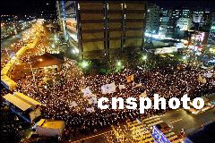 今天下午3時(shí),漢城各社會(huì)團(tuán)體和大學(xué)生7000人在市中心舉行追悼會(huì),譴責(zé)美軍裝甲車(chē)軋死2名韓國(guó)女中學(xué)生。韓國(guó)大國(guó)家黨總統(tǒng)候選人李會(huì)昌出席追悼會(huì),并再次要求美總統(tǒng)布什親自道歉和修改“駐韓美軍地位協(xié)定”。追悼會(huì)后,集會(huì)者走上街頭舉行了大規(guī)模燭光游行。目前已有近3萬(wàn)人聚集在漢城市中心,并徒步向美國(guó)駐韓使館移動(dòng)。韓國(guó)防暴警察已進(jìn)入緊急警備狀態(tài)。目前,市中心的交通已經(jīng)癱瘓,燭光游行正在平穩(wěn)舉行,沒(méi)有發(fā)生暴力事件。