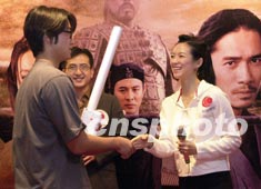 章子怡向《英雄》造型漫畫大賽得獎者頒獎。鄧慶樂 攝