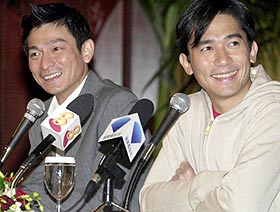 據聯合晚報報道,兩人前天到新加坡為《無間道》作宣傳,在記者會上,互相自己給自己戴高帽,還拼命給對方戴高帽,惹出不少笑話。