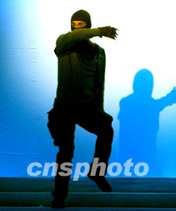 一名男模特像蜘蛛俠似的登上北京冬天的T型舞臺,為明年的時裝流行趨勢蒙上反恐戰(zhàn)爭的陰影。作者:賈國榮
