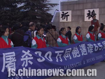 據(jù)悉,這是江蘇省和南京市有關(guān)部門共同舉辦的以“悼念遇難同胞,銘記歷史教訓(xùn);維護(hù)世界和平,促進(jìn)共同發(fā)展”為主題的“悼念南京大屠殺30萬同胞遇難65周年暨南京國際和平日”系列活動之一,當(dāng)晚舉行的千人“燭光祭”將把這一系列活動推向高潮。
