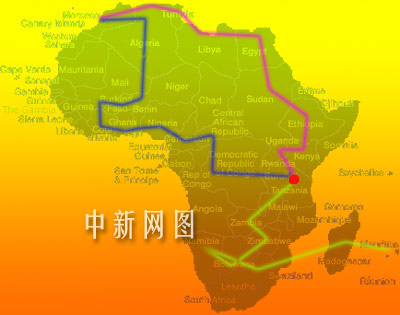 其中,作為學(xué)者的葛劍雄將跟隨攝制組的北線(圖中紅線)隊(duì)伍,采訪路線為:摩洛哥(卡薩布蘭卡)——(途經(jīng)阿爾及利亞)——突尼斯——利比亞——埃及——(逆尼羅河而上)——蘇丹——埃塞俄比亞——肯尼亞——烏干達(dá)————坦桑尼亞,共八個(gè)國(guó)家。