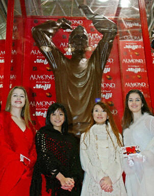 在日本東京市中心,一座三米高的貝克漢姆雕像揭幕,不過(guò)雕像不是石雕,也不是銅雕,而是用巧克力做成的。