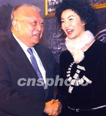 特首董建華蒞臨與明星張曼玉握手,祝賀預演成功。