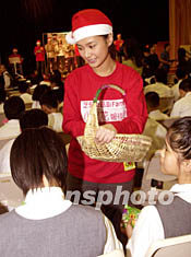 Twins成員鍾欣桐向學生派發(fā)圣誕禮物