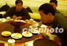 解放軍駐北京某部隊(duì)二十日請(qǐng)地方名廚師傳授烹飪技術(shù)并為戰(zhàn)士的飯菜打分,以提高官兵的伙食質(zhì)量。作者:宋吉河