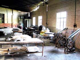 走進(jìn)車間后,發(fā)現(xiàn)有3個男工在往烘烤爐填煤,黑色的煤沫四外飛揚,飛揚的煤沫也飛進(jìn)了大鍋里煮的煎堆上。地板上黑乎乎的,沒有一處是干凈的。