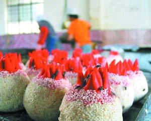 據(jù)當(dāng)?shù)氐霓r(nóng)民說,前面的另外一家制做煎堆的設(shè)備和過程極為骯臟,人吃了絕對會肚疼。這個老板比較聰明,煎堆不在當(dāng)?shù)劁N售,而且是銷往珠三角地區(qū)的城市,聽說還銷往香港和國外的城市。