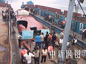 中新網(wǎng)長(zhǎng)壽十二月二十三日電(記者鄒 輝)近過(guò)四天時(shí)間的緊張打撈,重慶長(zhǎng)壽特大海損事故沉船今天下午整體打撈出水。重慶海事局官員陳勇介紹,經(jīng)過(guò)警方對(duì)沉船的仔細(xì)查找,未在沉船內(nèi)發(fā)現(xiàn)新的遇難者尸體。