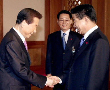 中新網(wǎng)12月23日電 韓國新當(dāng)選總統(tǒng)盧武鉉23日與現(xiàn)任總統(tǒng)金大中舉行了大選后首次會談,商討權(quán)力交接,其中涉及朝鮮核問題。