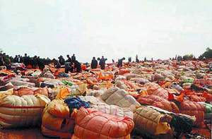 連日來(lái),陸豐、碣石等三級(jí)黨委、政府針對(duì)陸豐碣石鎮(zhèn)瘋狂走私洋垃圾衫一事,積極組織包括海關(guān)、邊防、公安、工商等專(zhuān)項(xiàng)隊(duì)伍,出動(dòng)1000余人次,對(duì)陸豐碣石鎮(zhèn)的所有市場(chǎng)、村莊等采取逐家清查的地毯式清理。到昨天為止,共查獲洋垃圾衫達(dá)1200捆、近100噸。