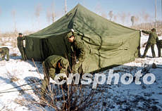 駐守東北地區(qū)的解放軍部隊,十二月冒嚴(yán)寒在草原腹地進行野外演練。圖為部隊在雪地快速搭建指揮所。作者:馬檣