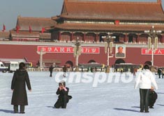 連續(xù)一周罕見的降雪后,北京天安門廣場(chǎng)管理部門刻意將廣場(chǎng)上的皚皚白雪保留,以便游客、特別是南國(guó)熱帶地區(qū)的游人欣賞拍攝雪景。如果北京的氣溫持續(xù)保持目前的低溫,天安門廣場(chǎng)的雪景可以保留十天左右。作者:任晨鳴