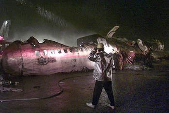 新航SQ006是前年十月二十七日深夜,從中正機場起飛前往美國洛杉磯時,因飛機誤入整修中的跑道并撞上機具,飛機爆炸起火,造成八十二人死亡。