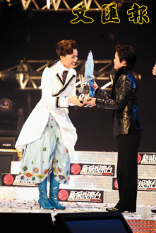 曾經(jīng)一度雄霸樂壇的四大天王,今年只得劉德華一人繼續(xù)和一班年輕歌手競(jìng)逐。華仔上臺(tái)領(lǐng)獎(jiǎng)時(shí)表示要多謝一直以來支持自己的人,在這樣的環(huán)境下仍對(duì)他鼓勵(lì)的朋友,大家不用擔(dān)心,他會(huì)好好地活下去,而此時(shí)和華仔曾打官司的中建主席麥紹棠也在臺(tái)下支持其子麥浚龍。