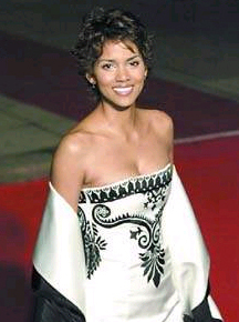 黑美人在007新片《明日再會》的首映禮上,儀態(tài)萬方,白色的絲綢本來就非常亮眼,再加上她的膚色及黑色的花紋,搭配得非常雅致,實在是上佳之作。