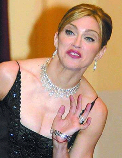 麥大姐在為某運動品牌做廣告時的濕發(fā)造型和007新片首映禮上與英女王搶風頭的華麗晚裝是被批評得最多的,而且明顯可以看出這位流行天后開始走下坡路了,頸間皺褶盡現(xiàn)。