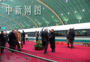 三十一日,世界首條磁浮商業(yè)示范運營線——上海磁浮列車線在滬通車。眾多中外來賓參加了今天在滬舉行的通車儀式。圖為來賓們在站臺等待乘坐首列磁浮列車。中新社 王健 攝