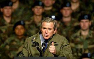 身穿綠色軍用夾克的布什對四千多名軍人及他們的家屬發(fā)表演說,他語調(diào)慷慨激昂:“我們已做好準備。”對伊拉克的戰(zhàn)爭并“不是去征服,而是去解放”。