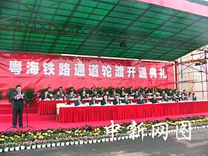 今天上午,中國鐵道部、廣東省和海南省舉行了隆重的通車儀式。中共中央政治局常委、國務(wù)院副總理吳邦國以及鐵道部、交通部、經(jīng)貿(mào)委、廣東、海南的領(lǐng)導(dǎo)在海口碼頭等候輪渡靠岸,并頻頻向火車輪渡招手。