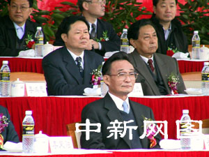 十點(diǎn)四十六分,中共中央政治局常委、國(guó)務(wù)院副總理吳邦國(guó)在棧橋火車前為粵海鐵開通剪彩。