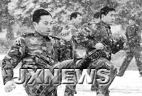 中新網(wǎng)1月7日電 “呵呵,在澡堂子里洗澡時(shí),滿身傷痕的隊(duì)員們都成了‘花斑豹’。”昨日,記者在江西省武警總隊(duì)三支隊(duì)內(nèi),看到了這些洋溢著神秘色彩的省城“飛虎隊(duì)”隊(duì)員。據(jù)江南都市報(bào)報(bào)道,這些隊(duì)員是南昌市有關(guān)部門首次秘密訓(xùn)練的警隊(duì)精英。