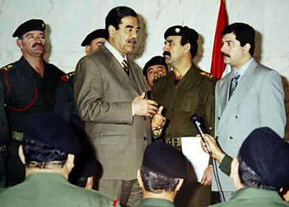 據(jù)路透社消息,薩達(dá)姆強(qiáng)調(diào),伊拉克是一個(gè)“富裕﹑擁有穩(wěn)定政府和強(qiáng)大軍事力量”的主權(quán)國家,而且是擁有最豐富對美作戰(zhàn)經(jīng)驗(yàn)的國家,相對1991年海灣戰(zhàn)爭慘敗,伊拉克已是“今非昔比”。