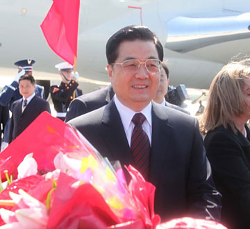 4月14日至17日 出席在巴西利亞舉行的“金磚四國”領(lǐng)導(dǎo)人第二次正式會(huì)晤并對巴西進(jìn)行國事訪問。 4月17日至18日 對委內(nèi)瑞拉進(jìn)行國事訪問。 4月18日 對智利進(jìn)行工作訪問。 |