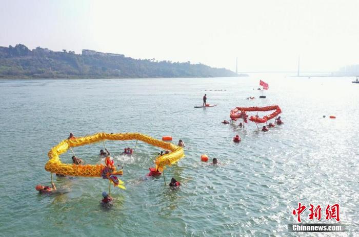 四川宜賓水中舞龍慶元宵佳節(jié)
