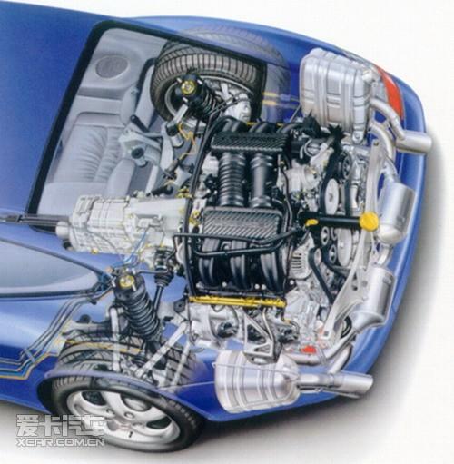 雖然引擎的總體尺寸沒有明顯增大,但容積在2.7L以上的911引擎為了不增加車尾寬度保持最優(yōu)化的整體布局,引擎和排擋箱/傳動軸之間是有一個傾斜的齒輪連接,跟一般汽車直連是有區(qū)別的。