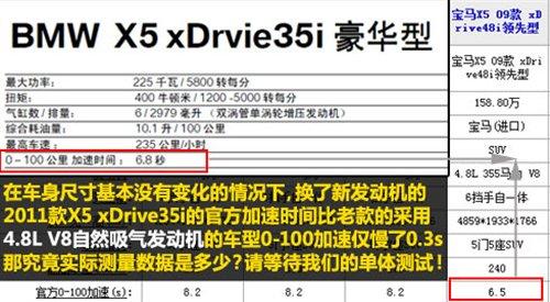 下面就說(shuō)到我們的重點(diǎn)了,此次2011款寶馬X5xDrive35i車型在發(fā)動(dòng)機(jī)上采用了型號(hào)為N55B30的單渦輪增壓發(fā)動(dòng)機(jī),這套發(fā)動(dòng)機(jī)系統(tǒng)也是寶馬最新研發(fā)出來(lái)的,之前在國(guó)內(nèi)的車型上僅有5系GT車型使用。特別需要說(shuō)明的是這款發(fā)動(dòng)機(jī)在搭配在車輛上后使得2011款寶馬X5的百公里加速僅需6.8S,僅比老款的4.8L V8發(fā)動(dòng)機(jī)版的車系慢0.3S,但究竟實(shí)際加速度是多少呢?還要等我們的單獨(dú)測(cè)試后才知道。