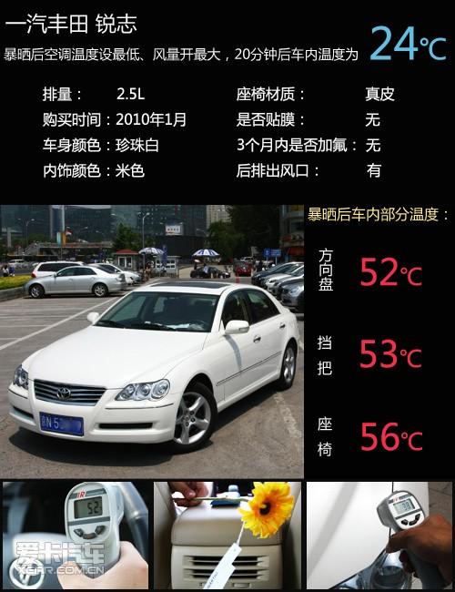 這臺今年1月份提的銳志空調涼得很快,運行時發(fā)動機發(fā)出的噪音很低,真想坐在里面不出來。珍珠白車漆要比黑色車溫度低很多,總體來說表現(xiàn)不錯。